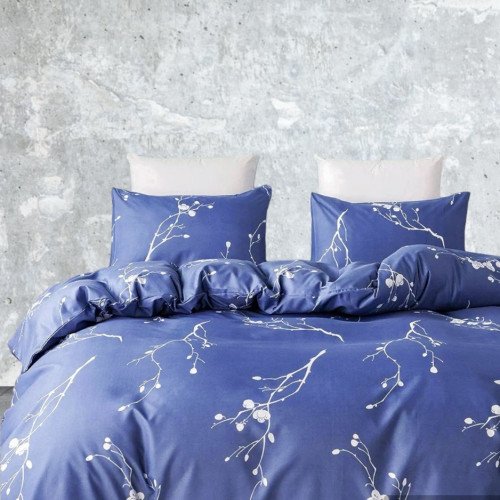 Pościel z nadrukiem białych gałązek na niebieskim tle wykonana z tkaniny perkalowej to doskonały wybór dla osób ceniących styl i wygodę w sypialni.